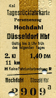 Sozusagen die Fahrt an den Arbeitsplatz vor Ort, denn die eigentliche Arbeitsleistung war natürlich im Schubdienst gefordert. Eine typische Szene, wie in den Jahrzehnten des Dampflokbetriebes unzählige Male vorgekommen ist: die Rückfahrt einer Lok von Hochdahl für den nächsten Einsatz vom Bf. Erkrath aus. Das Bw-Schild an der Lok scheint einen eher kurzen Schriftzug zu haben. Nach den Listen müsste die Lok in Derendorf stationiert gewesen sein (April 1963). Die preußische T 16.1 wird wohl kurz nach Erscheinen (erstes Baujahr 1914) bereits an der Steilstrecke zum Einsatz gekommen sein und wurde für Jahrzehnte ein zuverlässiges, robustes Dampfross im Stall der schweren Maschinen. Quellen berichten, dass es auch nach Erscheinen der gewaltigen T 20 (ab 1922) hier zu Probeeinsätzen mit dieser Loktype gekommen sein soll. Die spätere Baureihe 95.0 konnte aber offenbar keine Vorteile aufweisen. Foto Helmut Dahlhaus