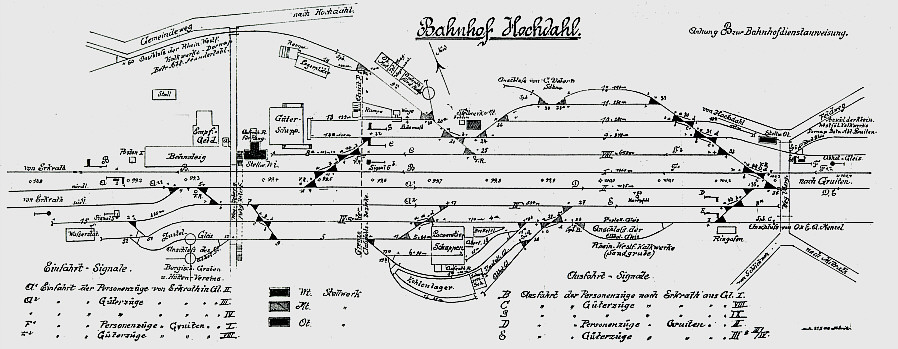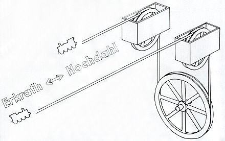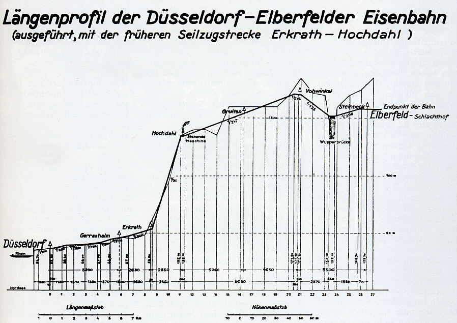1. Der Abschnitt Erkrath (km 96,53) - Hochdahl (km 99, 32) ist Teil der Bahnlinie zwischen Düsseldorf und Wuppertal; Eröffnung der Rampe am 10. April 1841 (zweigleisig) durch die DEE; die bergwärts fahrenden Züge werden von einer in Hochdahl stehenden Dampfmaschine mitgezogen; am 22. September 1841 bereits Umstellung auf Seilzugbetrieb mit Umlenkrolle und talwärts fahrendem Zug (etwa ab 1855 mit Einzellok); Austausch des mehrfach gerissenen Hanfseils gegen ein Stahlseil am 12. Juni 1843; Bau eines dritten Gleises für die Hilfsloks zum 22. Juni 1865, jetzt unter Regie der BME; Umstellung des Seilzugbetriebs auf Schiebbetrieb am 10. August 1926 durch die DRG; mit Aufnahme des elektrischen Betriebes Düsseldorf - Hochdahl bei der DB zum 26. Mai 1963 Schubdienste mittels Elloks, in Verbindung damit Abbau des dritten Gleises; mit Aufnahme des durchgehenden elektrischen Betriebes nach Wuppertal - Hagen zum 29. Mai 1964 nurmehr vereinzelte Schubleistungen; in Zusammenhang mit Betrieb der S-Bahn (Eröffnung zum 29. Mai 1988) wieder Einbau eines dritten Gleises.